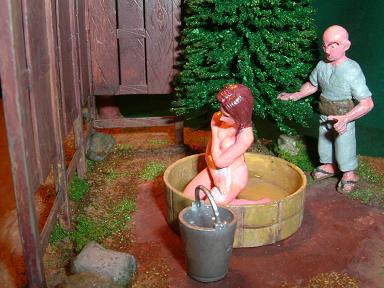 白昼堂々、行水中のお姉ちゃんのエッチな裸体をこっそり覗いています。
